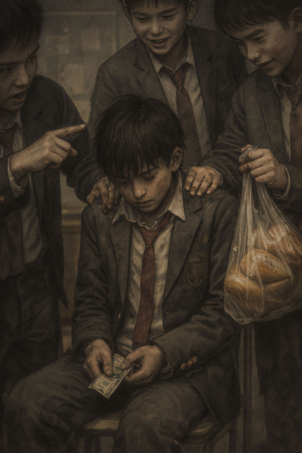 돈을 빼앗는 일도 마찬가지다. 처음에는 "잠깐 빌리자"는 비열한 말로 시작된다. 되돌려주지 않아도 아무런 문제가 없다는 사실이 확인되면, 그다음부터는 요구가 된다. 요구가 반복되면 권리가 된다. 빵셔틀 또한 그런 방식으로 탄생한다. 그 아이의 노동력이 필요해서가 아니라, 그 아이의 두려움이 필요하기 때문이다. 빵을 사 오게 만드는 힘은 배고픔이 아니라, 거절했을 때 벌어질 일을 모두가 알고 있다는 공포의 연대다. 이 과정에서 가해자들은 스스로를 잔인하다고 생각하지 않는다. 그들은 그저 "다들 그렇게 한다"는 말로 모든 책임을 회피한다.